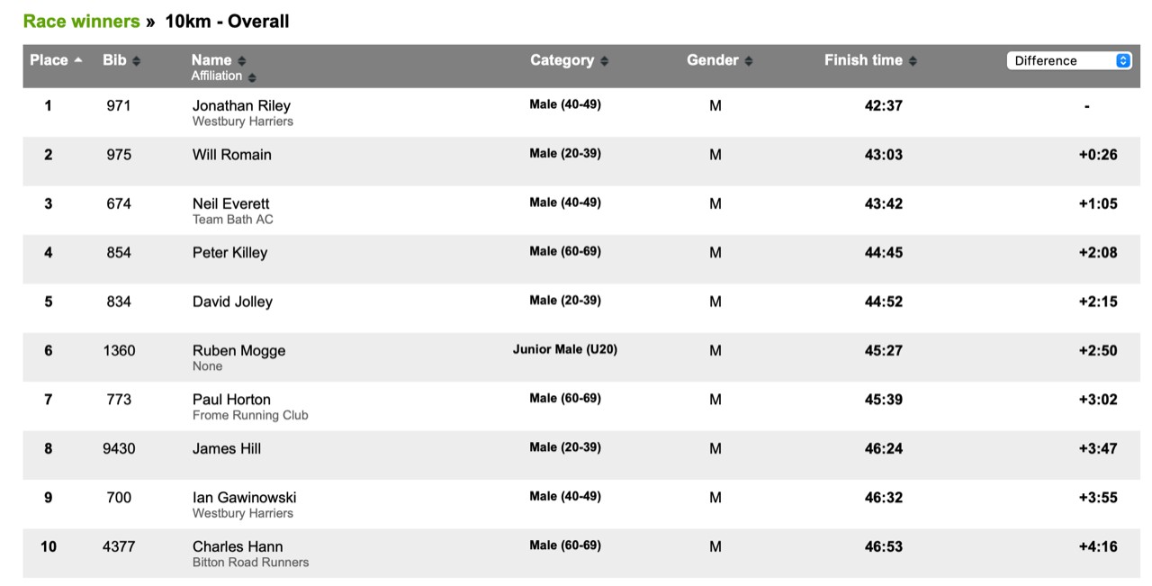 RELISH RUNNING RACES – BATH SKYLINE DAY RACE 10KM – BY JONATHAN RILEY