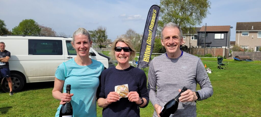Tamsin Elson Chick and Kate Hoffen coming first and second in their category and Richard Hughes also first, winning a nice bottle of Prosecco, so a good day out for the Westbury Harriers runners.